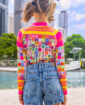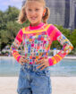 Be quick! Light up the beach in the super-limited Sunshine rashie – a joyful, one-of-a-kind design collaboration of craft and colour with artist and creator Rachel Burke.